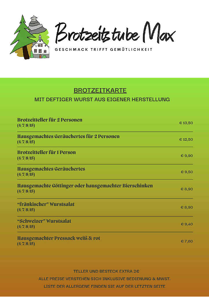 1/2 Ente aus dem Rohr mit Klössen und Blaukraut oder Burgunderbraten mit Klössen und Blaukraut und vieles mehr ### Achtung im Moment Sonntag ab16.00 Uhr geschlossen ### Zu unseren Tagesangebot täglich ab 15.00 Uhr unsere reichhaltige Speisekarte #### Alle Speisen gerne auch Ausser Haus ### täglich Hausmachtes Gebäck